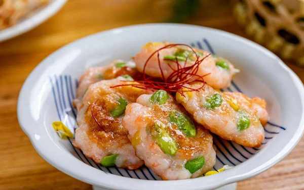 蠶豆仁和蝦滑攪拌均勻,壓成小餅,下鍋煎香,淺粉中透著翠綠,看一眼便惹得人口水橫流~~~
