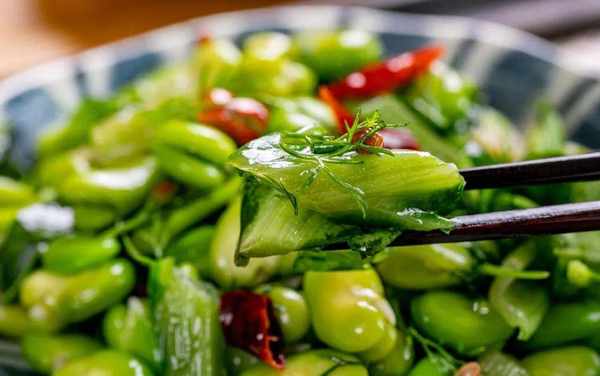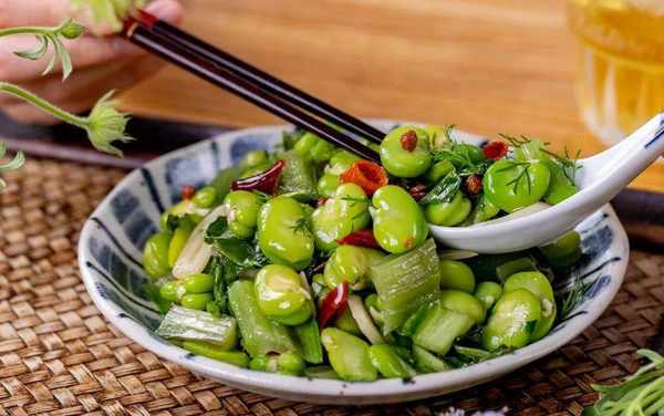 跟所有的豆科植物一樣,蠶豆淀粉豐富,單炒略顯清淺。