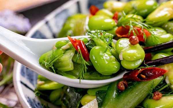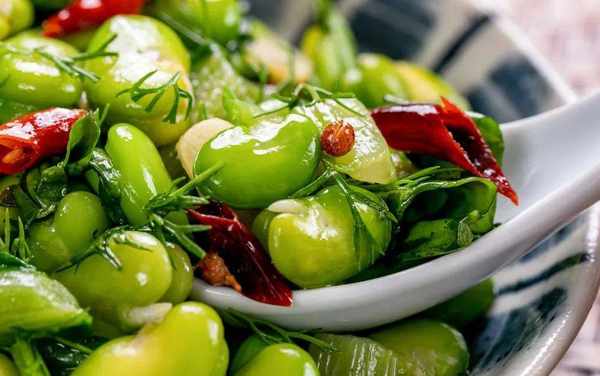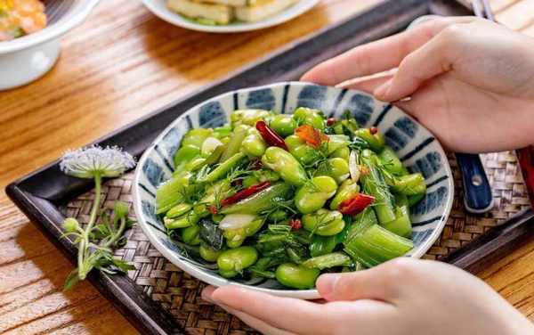 比如江南的蔥油蠶豆、雪菜炒蠶豆,湖南的酸菜炒蠶豆,還有西南一帶的藿香炒蠶豆。