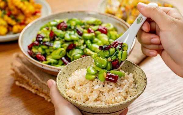 蠶豆已經是高碳水,再配米飯就不太利於減脂。