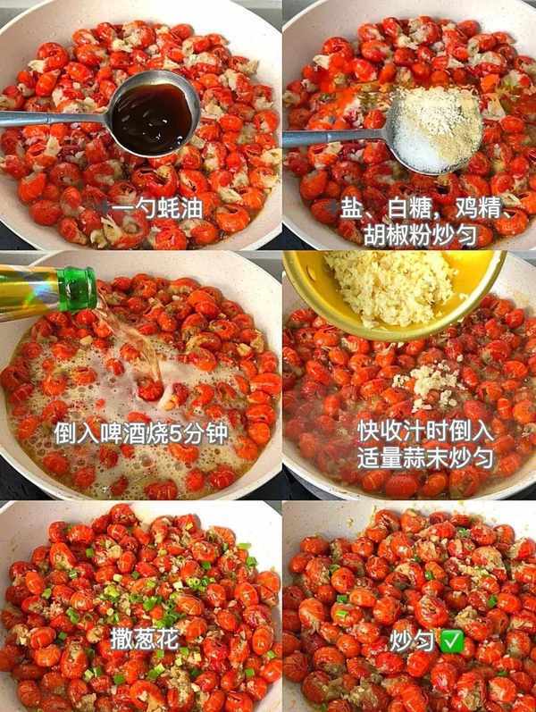 主要食材:龍蝦尾,薑片,蒜末,胡椒粉,生抽,白糖,蠔油,蔥花,啤酒,蒜香啤酒香知足,做法簡單一看就會,上菜也快,來上一瓶冰可樂冰啤酒,再適合不過瞭。