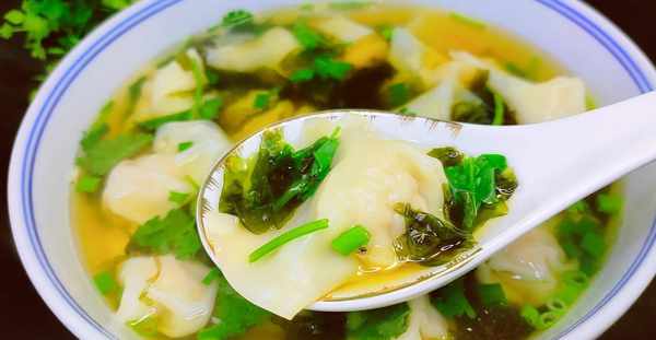 下面鍋中加入半鍋的清水,水開之後把餛飩放入鍋中,全部下入進去之後使用鏟子慢慢的推動一下,防止粘連鍋底,餛飩大概煮五分鐘,這個時候的餛飩差不多已經熟瞭,然後使用勺子取上幾勺面湯倒入大碗中,把裡面的調料都沖一下,接著使用一個漏勺在把餛飩盛出來放入大碗中,美味即成。這麼一道傢常版餛飩就做好瞭,如果想吃餛飩在也不用出去買瞭,就按照這樣做,湯鮮味美,貨真價實好吃美味營養,如果想吃的時候就做上這麼一碗,大人小孩都愛吃,喜歡就收藏起來試一試。