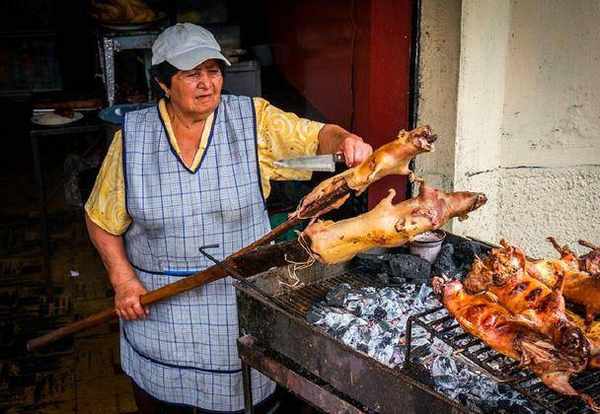 這是厄瓜多爾的烤豚鼠,類似我們的烤乳豬。南美人從沒見過傢豬,因此在厄瓜多爾的山區,豚鼠是重要的食物來源,地位堪比豬,羊這樣的大型牲畜。豚鼠在厄瓜多爾人的餐桌上出現頻率不亞於豬肉,在安第斯山區,豚鼠是款待上賓的佳肴。在厄瓜多爾的街頭巷尾,也經常能聞到撲鼻而來的烤豚鼠香氣。價錢從10美元到30美元不等,比之於豬肉還是要貴一些的。