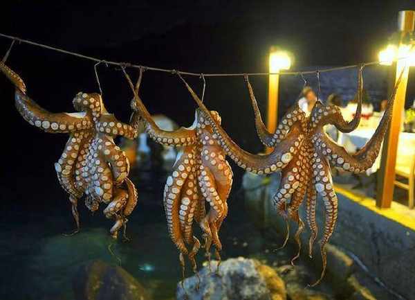 這是希臘的烤章魚,看起來有些恐怖。希臘人對魚貝海鮮情有獨鐘。那些搭配新鮮蔬菜,使用橄欖油烹制的海鮮大餐是來自海洋深處的美味,常見海鮮菜肴非常多,對於章魚,希臘人通常曬幹、煮和烤著來吃,撒上胡椒粉,淋點橄欖油和檸檬汁,絕對美味!
