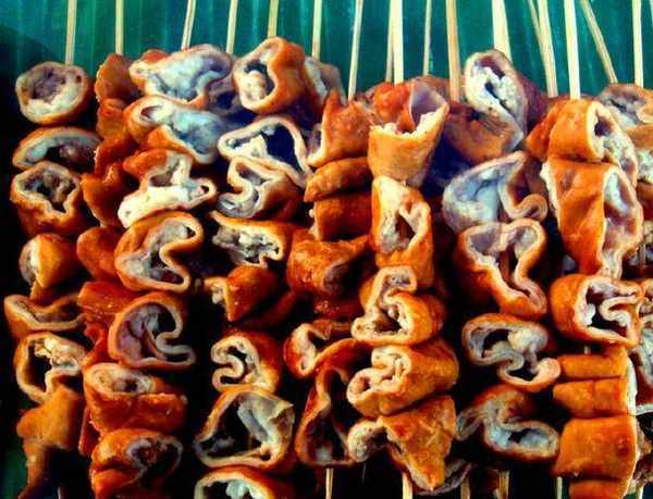 豬大腸在很多國傢都是被直接丟棄,而在亞洲一些國傢確是難得的美味,我國有一道菜就是溜大腸,喜歡吃的人每餐必點一盤品嘗。在菲律賓人眼中,豬大腸同樣是美味,這是菲律賓燒烤攤上的烤豬大腸。