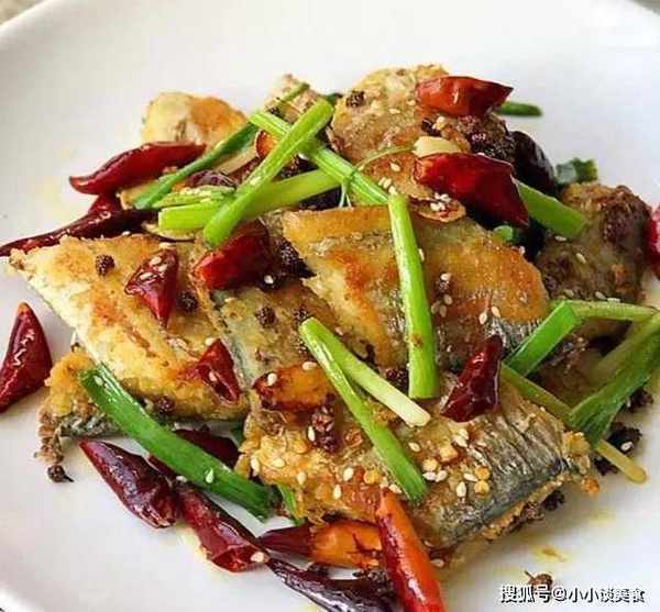 4.將所有材料炒香,加入炸好的毛尾,翻炒片刻,起鍋裝盤。