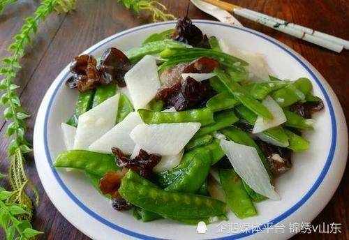 1、食材處理:荷蘭豆頭尾去蒂,洗幹凈;山藥削皮切絲,用鹽水洗掉粘液;蒜切末。