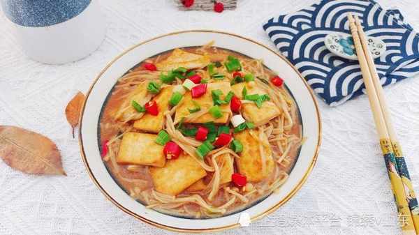 食材:金針菇、嫩豆腐、香菜、小米辣、小蔥、辣椒粉、蠔油、淀粉、白砂糖、食鹽、雞精、生抽