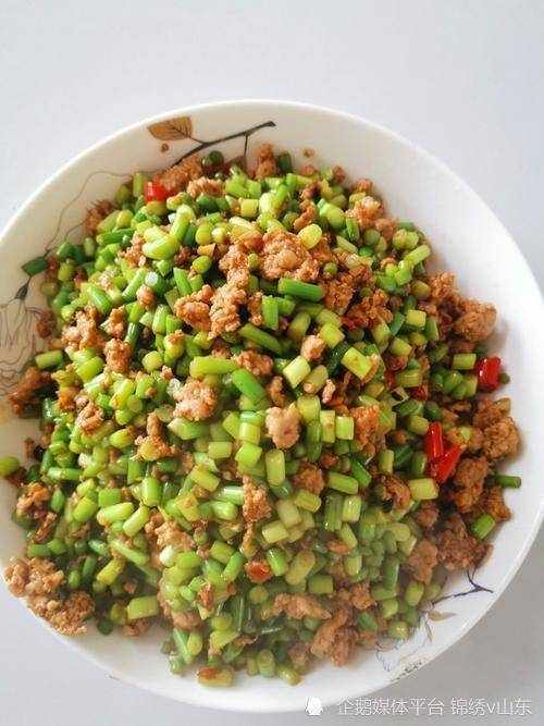 2、把控幹水分的蒜苔切成碎末備用;註意,這裡一定要切碎,而不是切段,切碎口感更好。