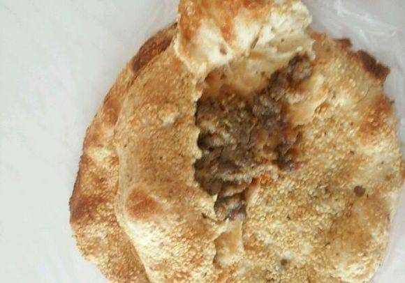 淄川肉燒餅又薄又圓,兩面金黃,其中一面撒滿芝麻粒,餅內帶有肉餡丁,吃起來筋道耐嚼,滿口醇香。