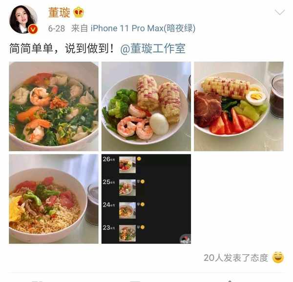 董璇是雪花女神主角,演技好,人長得漂亮,即使40歲瞭依然有著少女般的身材,明星在飲食上很自律,清淡,少油少鹽,但是營養均衡,看看董璇這幾天的美食打卡,葷素搭配,色彩艷麗,隔著屏幕就想吃。