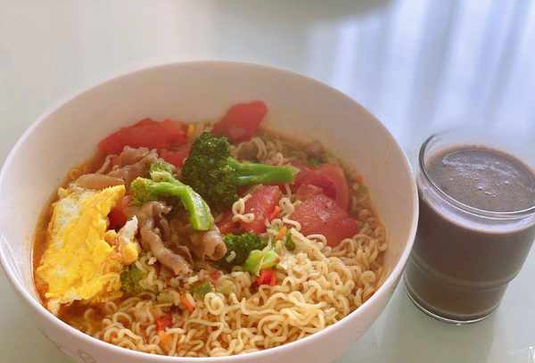西蘭花番茄肥牛雞蛋面+黑豆漿(6月24號)
