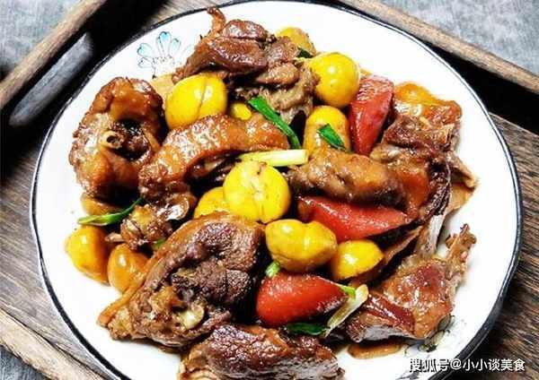 鴨肉500克,栗子200克,胡蘿卜2根,蔥適量,嫩薑適量,油適量,鹽適量,沙茶醬適量,醬油適量,適量料酒適量,白糖1勺,雞精少許。