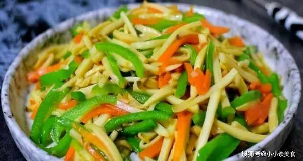 4、加入杏鮑菇炒勻,加1勺生抽拌勻。加入荷蘭豆和胡蘿卜,攪拌至順滑,然後加入鹽。加入雞精,炒至順滑,裝盤
