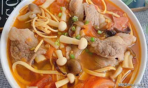 配料表:掛面、肥牛肉、番茄、白玉菇、蟹味菇、大蒜、蔥花