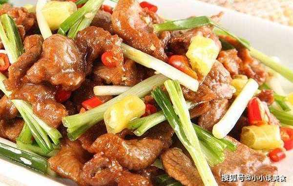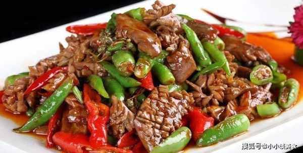 3.油鍋燒熱,放入腰子爆開,撈出瀝油,留鍋底,加入泡椒、蔥、薑、蒜爆香,加入青紅椒末拌勻後倒入腰子和芡汁,收汁後攪拌均勻。