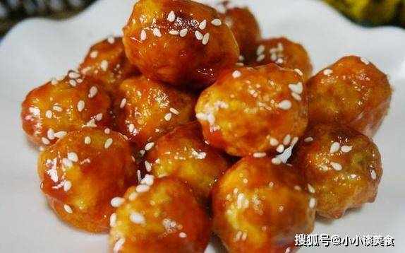 8、翻炒均勻,收汁,每個鵪鶉蛋刷上糖醋汁,撒上白芝麻出鍋。