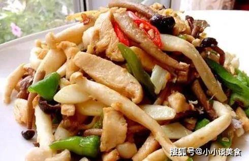 7、最後加入雞腿菇絲,倒入用老抽或鮑魚汁調制的淀粉,攪拌均勻。