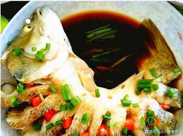 材料:鱸魚一條,紅辣椒少許,蔥少許,五明,鹽少許,胡椒粉少許,料酒少許,蒸魚用醬油少許;