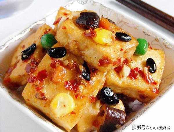 豆腐一塊,香菇若幹,玉米若幹,胡蘿卜若幹,青豆若幹,醬油兩勺,料酒少許。