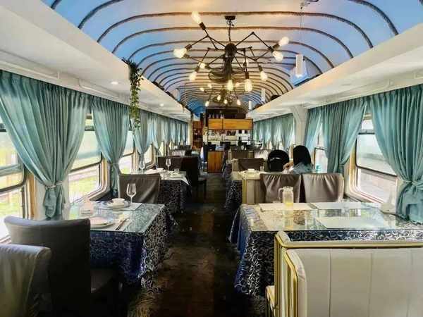 一抬頭望,入目是讓人沉迷的綠色環境。餐廳的外觀是一輛火車,你體驗過在火車上吃美食嗎?如果你還沒在綠皮火車感受過美食帶來的激情,不如來這裡~