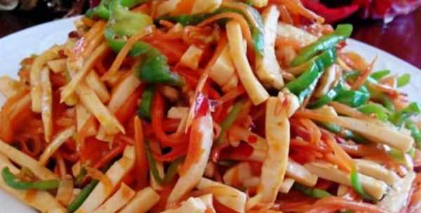 材料:千葉豆腐150克,香菇50克,花椒30克,胡蘿卜50克,大蒜適量,紅辣椒適量,白糖1茶匙,白醋半茶匙,白醋1茶匙老醋、鹽2克、胡椒粉少許、水淀粉少許、生抽1茶匙、幹淀粉1茶匙