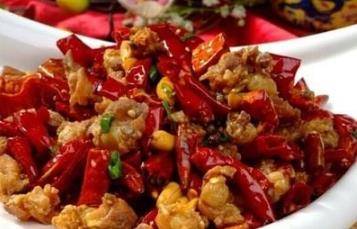 凍雞肉500克,幹辣椒50克,色拉油50克,鹽2克,胡椒粉15克,味精1克,熟白芝麻5克,香油5克,香油6克香油1個,大蒜1個,薑6克,紅油5克,小蔥20克,鹽水400克