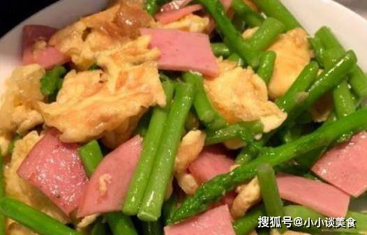 1、蘆筍去老根,洗凈斜切片,雞蛋打散,培根切小塊