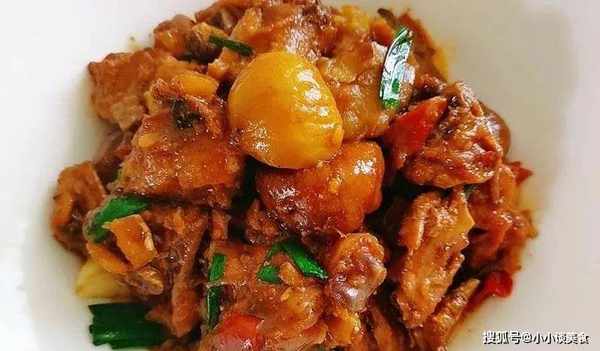 1、鴨肉洗凈切丁;栗子去皮後,用開水燙幾分鐘,這樣裡面的膜就很容易剝掉瞭。
