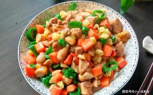 8.炒至胡蘿卜顏色變深,加入雞丁和鹽炒勻