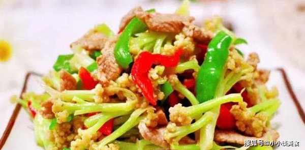 1、五花肉洗凈,切大塊備用;花菜洗凈切成小朵,焯水備用;