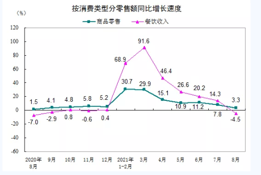 據國家統計局公開資料顯示,8月份,國內經濟持續保持恢復態勢,國內疫情多點散發和汛情等自然灾害對經濟運行的衝擊顯現,中國餐飲業受到較大影響,實現收入3456億元,占社會消費品零售總額的10.04%,同比下降4.5%。1—8月份,餐飲收入28919億元,占社會消費品零售總額的10.28%,同比增長34.4%。