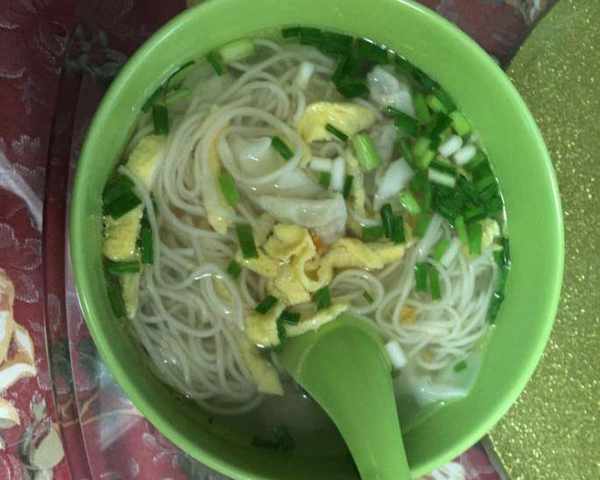 餛飩煮麥面:先拌料:將適量的雞蛋絲、蔥花、鹽、榨菜末、豬油裝碗裡備用;水燒開放入餛飩、麥面煮,再水開三次加水三次;待餛飩、麥面熟後裝碗,最倒入面湯水即可開始享用啦。