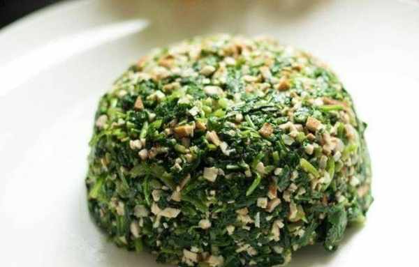 3、然後取出用手擠幹水分,切碎裝盤。