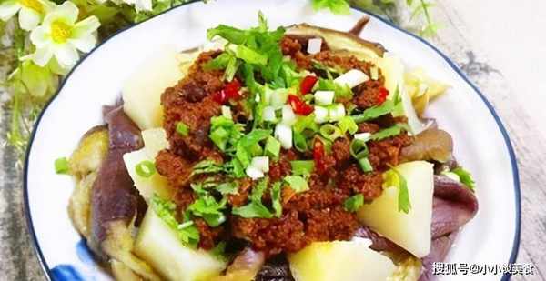 材料:土豆1個、茄子3個、雞蛋1個、豆瓣醬2湯匙、添加劑、植物油1元、蔥花適量、香菜適量