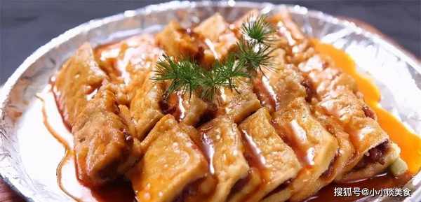 5.炸好的豆腐切成小塊,放入肉餡