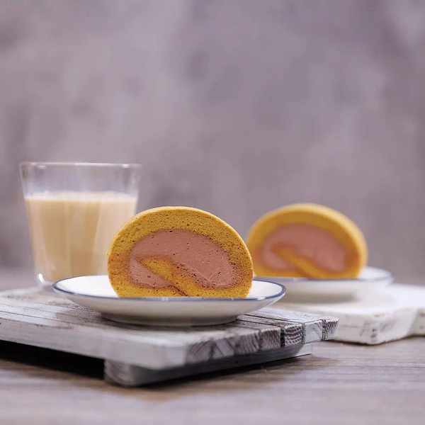 比如,今天這款淡淡咖啡味和可可味結合的蛋糕卷。松軟細膩,又有那麼一點與眾不同。