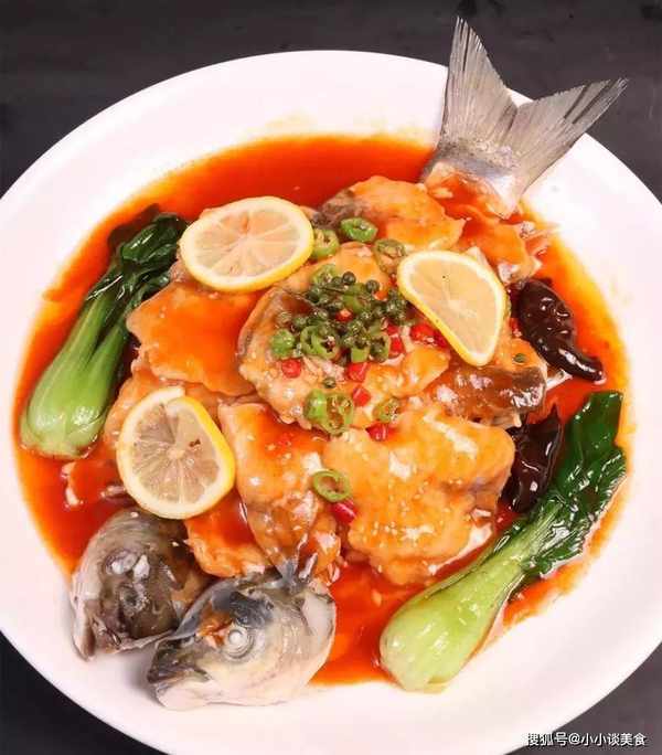 4、鍋內放底油燒熱,加入蔥片、蒜片、薑5克炒香,加入紅泡椒10克、野菜椒5克,10克番茄醬和10克胡椒粉,攪拌均勻,煮沸白醋15克,白糖10克,加水300克煮勻,去渣,加入6克傢樂熱和酸鮮露,用水裹好澆在魚片上,撒少許青紅椒、花椒、檸檬片,熱油30克即成。