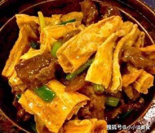 1.豆腐幹浸軟。腐竹一定要用冷水泡才好吃。一般浸泡一個小時左右。準備適量的牛腩。牛腩的選擇可以根據自己的喜好。筋膜多、肥瘦相間的沙朗牛肉是最好的。洗凈切大塊,冷水下鍋,加入薑片、蔥段、料酒。煮開後撈出浮沫,洗凈備用。