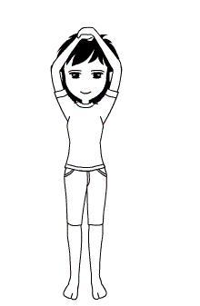 雙手合十,舉過頭頂,手臂伸直,緊貼雙耳,腰往左側彎到極限。