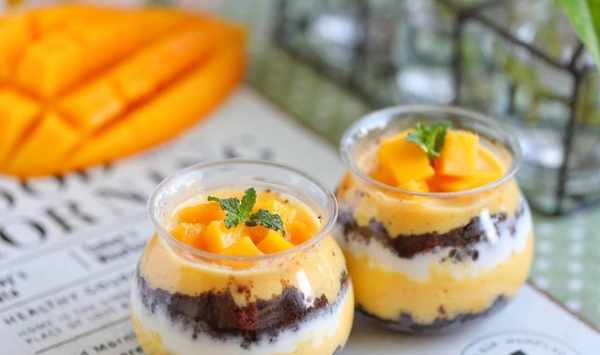 所需食材:奧利奧60克、芒果100克、酸奶60克、酸奶50克。