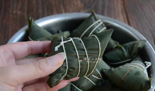 用棉繩將粽子綁緊即可,肉粽子就包好瞭。