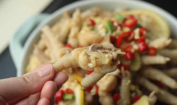 中國人愛吃雞爪已經有幾千年的歷史瞭,早在呂氏春秋時期就有記載瞭。其實咱們中國很多地方都對雞爪這種食材情有獨鐘,廣東的早茶中有一道必點的虎皮雞爪等等。這虎皮雞爪多說幾句,和尋常的雞爪頗有不同,雞爪表面呈現虎紋的紋路,故得此名。除瞭外形不一樣,體積上也是大瞭不少。因為虎皮雞爪得先煮熟瞭之後再高溫油炸再放入冰水裡浸泡至表面呈現虎紋紋路,再蒸制軟而無骨,口感醇厚,入口即化。