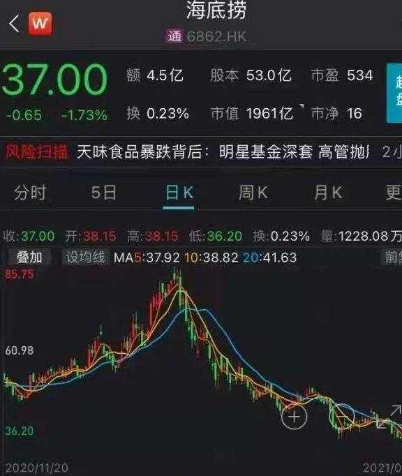 海底撈的股價確實跨瞭,但在之前,它堪稱港股的一出神話。