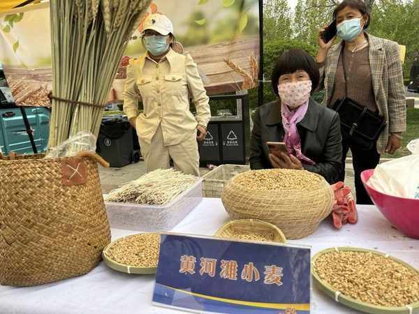東營市在清風湖西門廣場佈設美食區、特色農產品區等,來自沿黃九省(區)500餘種農產品在這裡現場售賣。