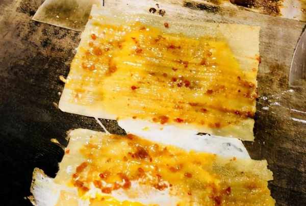 正宗的烤冷面就是把很多冷面放在鐵板上,打上一個雞蛋,利用蛋液把冷面凝固在一起之後,就形成瞭一張“面皮”,再進行正常步驟。