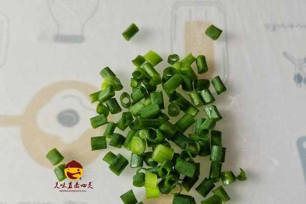 第二步:蔥去掉根須和黃葉,用清水清洗幹凈,切成蔥花備用。