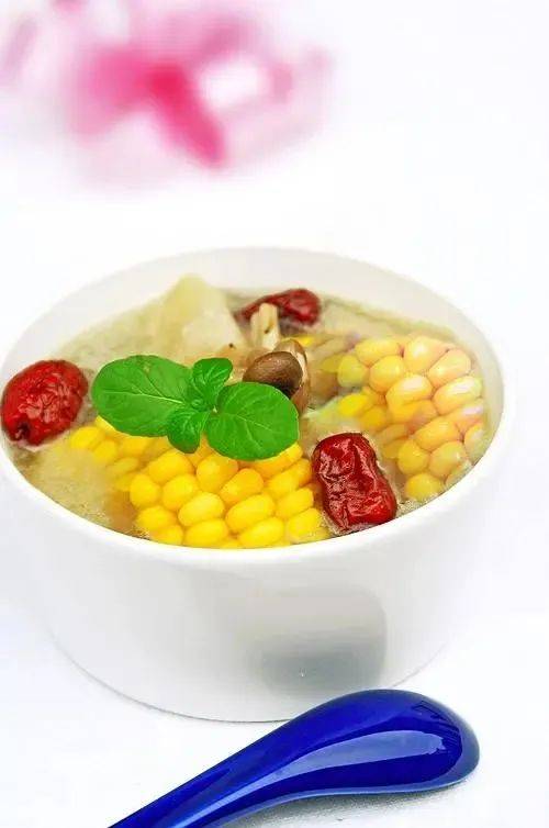 7 熬制3小時後,放入玉米塊、蟹味菇、紅棗繼續熬1小時