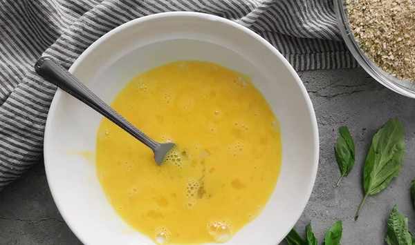 將烤箱預熱至180°C。在一個碗裡打雞蛋。