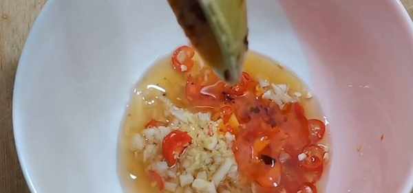 4、我們開始調一點料汁,蒜末,小米辣,加入小米醋。少許鹽,雞精、香油,來一點自制辣椒油攪拌均勻就可以瞭。